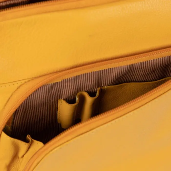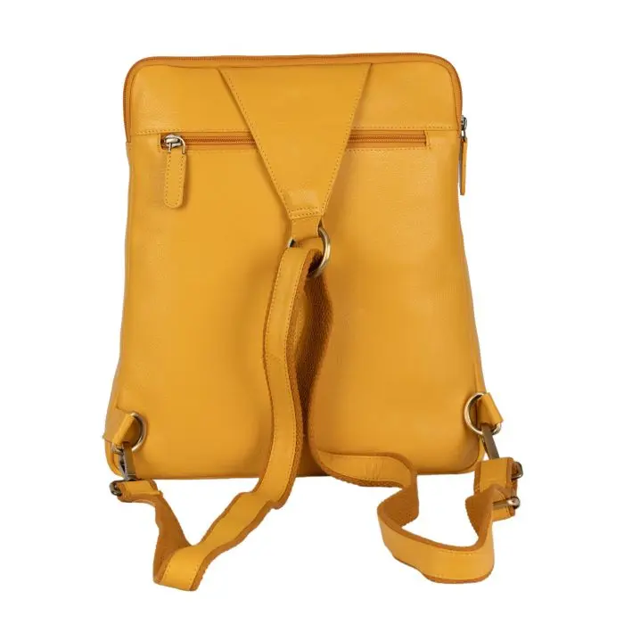 De warme okergele kleur geeft de rugzak een frisse en moderne uitstraling die meteen opvalt zonder schreeuwerig te zijn. Tegelijk is de tint verrassend makkelijk te combineren met zowel neutrale als kleurrijke outfits.