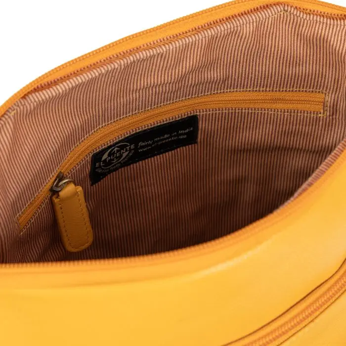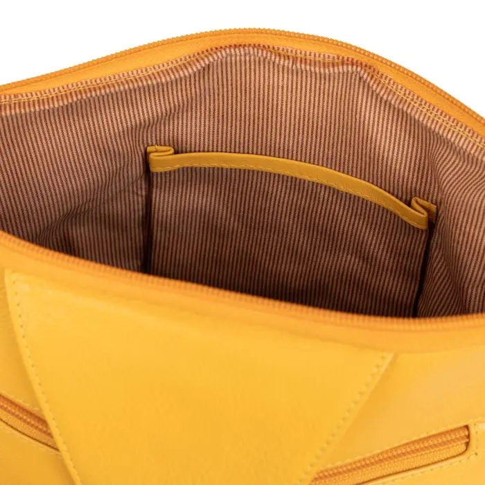 Praktische stadsrugzak uit India in een warme okergele tint. Compact, licht en comfortabel. Perfect voor werk, boodschappen of een dagje op pad.